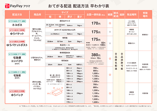 キャンペーンの対象は、「PayPayフリマ」の配送サービス、「おてがる配送(ヤマト運輸)」の「ネコポス」宅急便コンパクト(EAZY)、宅急便(EAZY)(60~160サイズ)、「おてがる配送(日本郵便)」の「ゆうパケット」「ゆうパケットポスト」「ゆうパック」(60~170サイズ)。薄手の衣類、アクセサリーや本などが送れるA4サイズの「ネコポス」や「ゆうパケットポスト」から、扇風機やエアコン(室内機)など小型の家具が送れる「ゆうパック」の170サイズまで最大1800円分の送料に相当するPayPayポイントが後日付与される。ユーザーは、販売手数料や送料を気にせず、季節の変わり目の不用品の価値化として初めてのフリマ出品をお得に利用できる。
