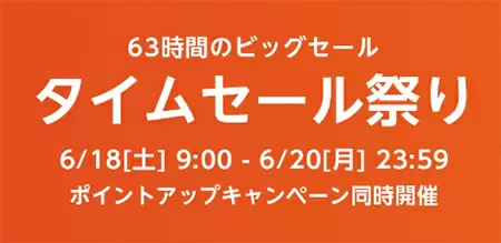 Amazonは6月18日9時~20日23時59分までの63時間、最大10%ポイントアップするビッグセール「タイムセール祭り」を開催する。