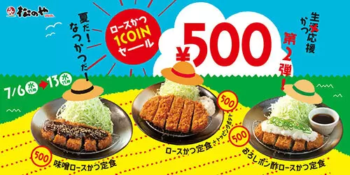 松屋フーズは7月6日~13日の期間、同社が展開するとんかつ専門店「松のや・松乃家」にて、「ロースかつワンコインセール」を開催する。