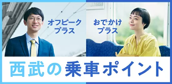 西武の乗車ポイントサービスは、対象のPASMO 通勤定期券保有者を対象に、平日朝に特定の条件でピーク時間帯を避けて乗車すると10ポイントもらえる「オフピークプラス」と、西武線沿線の観光地やイベントなどに出かける際、特定の条件で西武線に乗車するとポイントがもらえる「おでかけプラス」の二種類。