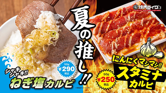 焼肉ライクは、たっぷりにんにくが楽しめる新商品「スタミナカルビ」を期間限定で7月14日から全店舗で販売する。また、既存の人気セットメニュー「ねぎ塩カルビ」の単品も同日から提供する。