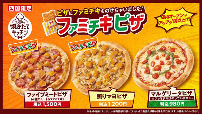ファミリーマートは、四国地方限定の新ブランド「ファミマの焼きたてキッチン」から「焼きたてピザ」3種類を7月26日に発売する。