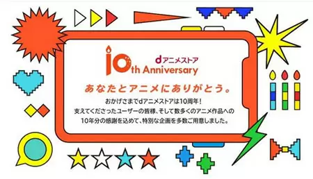 NTTドコモは7月15日に、同社が提供するアニメが見放題の定額制動画配信サービス「dアニメストア」において、サービス開始から10周年を記念した「『dアニメストア』10周年記念プロジェクト」を開始した。