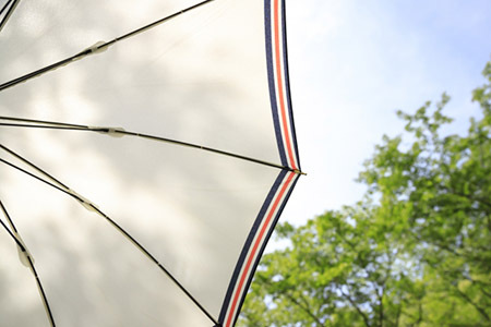 日傘の能力は想像以上に高く、日傘があるのとないのとでは約20度も表面温度が変わるといわれている。最近の猛暑の中で熱中症を予防するのに効果的なアイテムといえるだろう。