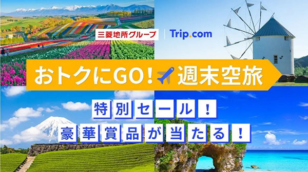 三菱地所とグローバル旅行サービスプロバイダーのTrip.com Groupは、週末の飛行機旅行を応援するキャンペーンを8月18日から実施している。航空券や宿泊券などが当たる豪華抽選会、期間中のみの特別セールなど、お得に週末空旅が楽しめる。キャンペーン期間は9月30日までとなる。