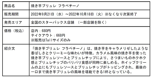 「焼き芋ブリュレ フラペチーノ」で秋の味覚を堪能してみては?