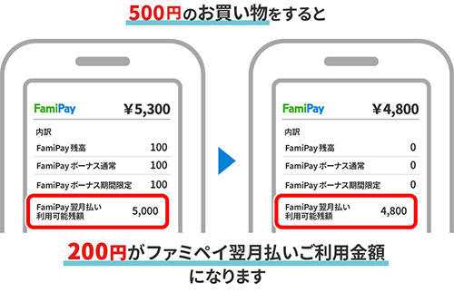 ファミペイ翌月払いの利用には申し込みが必要(審査あり)。決済前のチャージが不要・支払いは後日まとめて精算する便利な支払方法と位置付けている。