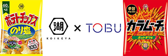 今回のコラボレーションは、池袋東武が今年で開店60周年を迎えるにあたり、湖池屋のポテトチップス のり塩が同じく今年で発売60周年を迎えたことに加え、東武東上線沿線の成増駅に湖池屋が本社を構えているという縁で実現した。