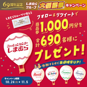 しまむらは、10月26日から順次、しまむらグループ各店舗で「グループ大創業祭」を開催する。