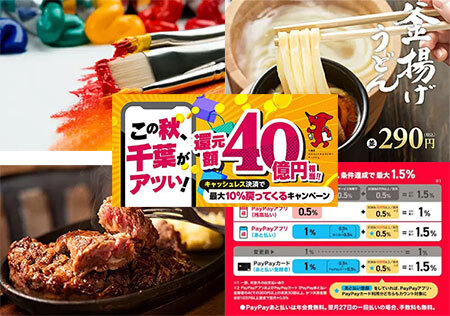 キャッシュレス決済の推進と地域経済の活性化を目指し、千葉県は「この秋、千葉がアツい!還元額40億円相当!!キャッシュレス決済で最大10%戻ってくるキャンペーン」を11月1日~30日に実施している。