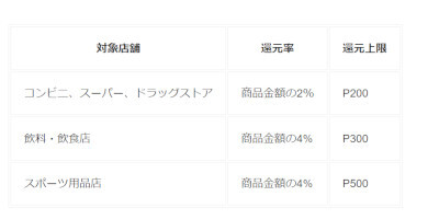 具体的には、通常の決済還元の1%に加え、コンビニ、スーパー、ドラッグストアの対象店舗(ローソン、スギドラッグ、サミット、サンドラッグ、ダイレックス、ジャパン、トップス)では、200ポイントを上限に、決済金額の2%相当分のポイントが進呈される。