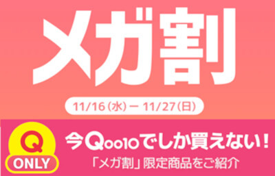eBay Japanは11月16日~27日の期間、同社が運営するインターネット総合ショッピングモール「Qoo10」において、最大9万円分の割引を受けられる2022年最後の「20%メガ割」を開催している。