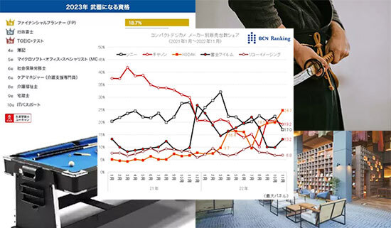 【今週のニュースダイジェスト】 12月9~15日の期間、「BCN+R」で注目を集めたのは、2023年武器になりそうな資格についてファイナンシャルプランナーが1位だったことを取り上げた記事だった。また、「BLEACH」初代護廷十三隊の名前、コンパクトデジカメ(コンデジ)市場に関する記事も読まれた。山形市の滞在型温浴施設、室内遊びの機能を備えたマルチテーブルがテーマの記事も関心が高かった。