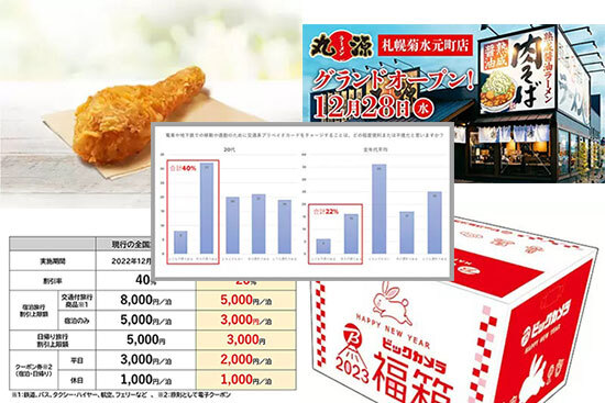【今週のニュースダイジェスト】 12月23~29日の期間、「BCN+R」で注目を集めたのは、北海道に「丸源ラーメン」が初出店した内容の記事だった。また、KFCが年末年始に「オリジナルチキン」を数量限定で販売するという記事も読まれた。「全国旅行支援」「ビックカメラの2023年新春福箱」、「交通系ICカードの事前チャージ」がテーマの記事も関心が高かった。
