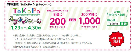 期間中、最大750ポイントをプレゼント。加えて、23日(本日)から都営交通ポイントサービス「ToKoPo(トコポ)」入会キャンペーンも実施する。