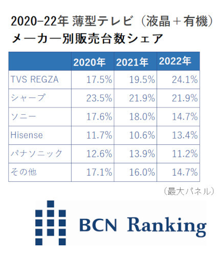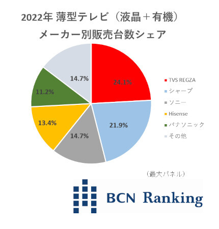 2022年、薄型テレビ(液晶+有機EL)でTVS REGZAが初のトップ獲得!
