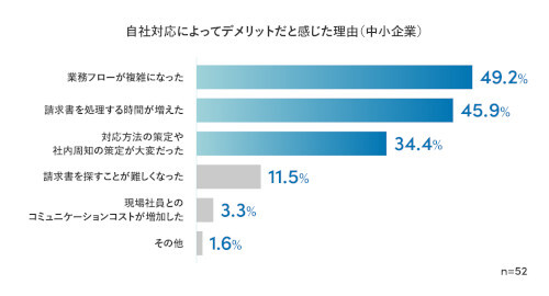 電子帳簿保存法への自社対応にデメリットを感じる理由、1位は「業務フローが複雑になった」