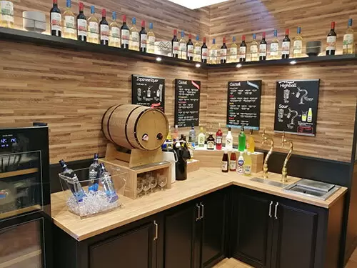 ステーキのどん大宮西口店に導入された「アルコールバー」では、20種類以上のアルコールをラインアップするとともに、ソフトドリンクバーも併設している。さまざまなお酒をそろえ、サーバーから自分で注いで楽しめるほか、オリジナルカクテルの飲み比べなど、さまざまなシーンに対応する。