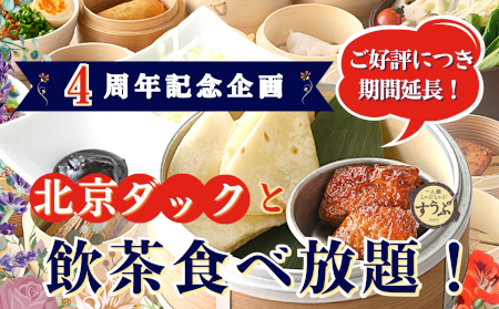 スタイリッシュな空間で、一人に一つのMY(マイ)鍋スタイルで台湾飲茶や台湾一人鍋しゃぶしゃぶ、台湾スイーツなどの「台湾グルメ」が堪能できる一人鍋しゃぶしゃぶ すうぷ 静岡パルコ店。今回、2月28日までの期間限定で開催中の4周年記念企画を、好評につき3月14日まで延長することになった。期間中は、「飲茶食べ放題」コースで肉厚ジューシーな「北京ダック」を楽しむことができる。