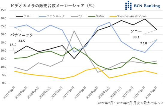 ビデオカメラ市場は、コロナ禍の影響で販売台数が2020年2月比で41.7%と、ほぼ6割減の状態だ。動画機能を重視したデジカメやスマートフォンに顧客を奪われつつある。そこへ値上げの波だ。市場環境は必ずしもいいとは言えない。しかし、アクションカメラや360度カメラなど新たな製品カテゴリーは堅調。従来型のビデオカメラも勢いを吹き返しつつあり、徐々に反転の動きが見え始めている。コロナが明けてどこまで回復できるのか。需要期を迎えているこの3月、そして9月が正念場だ。(BCN・道越一郎)