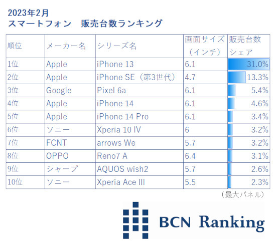 2023年2月、最も売れたスマホは「iPhone 13」 Androidトップは「Pixel 6a」!