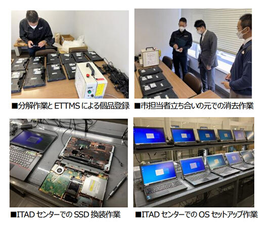 ソフマップとデータ適正消去実行証明協議会(ADEC)は、岐阜県美濃加茂市で使用していた廃棄予定のパソコンを、ソフマップITADサービスの仕組みを活用して総務省のガイドライン(地方公共団体における情報セキュリティポリシーに関するガイドライン(令和2 年12月発表)に準拠したデータ消去を行い、リユースパソコンとして再生し、市に寄贈する「SDGs未来都市みのかも × ソフマップ リユースPC地域再利用事業」の実証実験を行った。