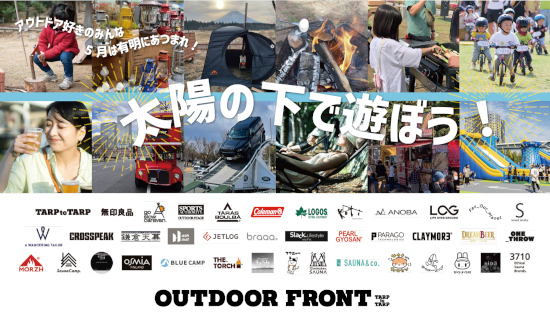 「屋外アウトドア物販」では、人気のアウトドアグッズを扱うブランドが大集合する。出店予定ブランドは、ANOBA、AUTO MOTIVE JAPAN、A WANDERING TAILOR、BAKBAK、braaa、CLAYMORE、Coleman、CROSSPEAK、DREAMBEER、Fav_Our_Planet、GYOSAN、go slow caravan、Hashout、koti BEAUTY&YOUTH、LOG、LOGOS、ONE POT WONDER、ONE_THROW、Outdoor Assist、OWLMILS、PARAGO、Slack.Lifestyle、SPORTS AUTHORITY、S wood works、TARAS BOULBA、TARPtoTARP、TECH COUNTRY、ジェットログ、鎌倉天幕、Jackery、ばかまぶし。出店ブランドは日によって異なる。