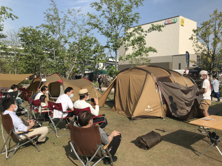 「テント設営説明会」(参加無料)では、これからキャンプを始めたいというアウトドア初心者向けに、設営から撤去までスタッフがわかりやすく説明する。