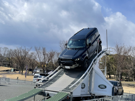 「ディフェンダーで疑似オフロード体験」(無料・各日175組(整理券配布))では、インストラクターが運転する車に同乗し、ディフェンダーの悪路走破性の高さを体感できる。高さ5m・最大傾斜43度のTWIN TERRAPODが登場。1組あたり4人まで同乗できる。