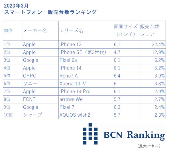 2023年3月のスマホ販売台数は前年割れ、最も売れたスマホは「iPhone 13」