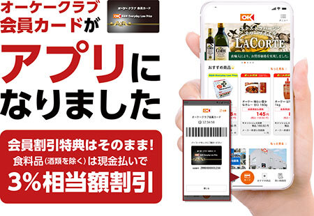 なお、オーケーは、KDDIのオンラインブランド「povo2.0」の「#ギカ活」の対象店舗となっており、「au PAY」で2000円以上購入すると「1GB(7日間)」のギガ(データ容量)がもらえる。一方、「オーケークラブ」(会員カード発行費用200円)に入会し、会計時に会員カードを提示すると、現金払い時に限り、本体価格×3/103(3%相当額)割引となる。会員カードと同等の割引が受けられる「オーケークラブ会員カードアプリ」も提供している。