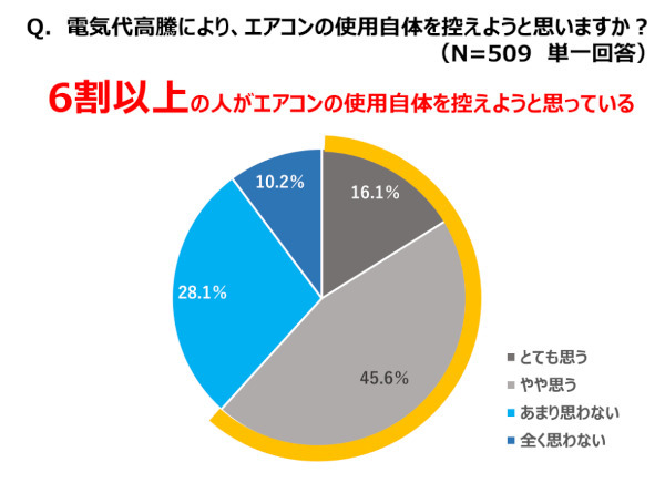 また、エアコンの使用自体を控えようと思っているのは過半数の6割以上。電気代値上げによる家計への負担が高まると感じているのは8割を超え、9割が家庭で「節電に取り組みたい」と答えているとのことだ。一方、節電を行う上で「やり方」や「効果」が分からないといった課題も多く挙げられているという。