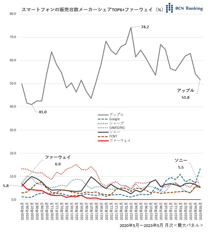 スマートフォン(スマホ)市場で激震が続いている。バルミューダの撤退を前座とすれば、京セラ撤退が二ツ目、FCNTの経営破綻が真打と3段構えの大激変だ。円安と原材料の高騰、その他カテゴリーでのインフレの影響が大きい。現在スマホ事業を営む各社は、この難局を乗り越えることができるのか。5月の販売台数シェアで5位だったソニーと、米中半導体摩擦で日本市場から一旦消えたファーウェイのキーマンに、スマホ事業の現在とこれからについて訊いた。