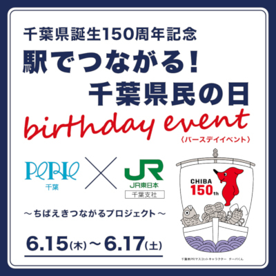 千葉県誕生150周年を記念し、6月15~17日の3日間にわたって「駅でつながる! 千葉県民の日 バースデイイベント」を開催している。主催は、千葉ステーションビルが運営する駅ビル「ペリエ千葉」とJR東日本千葉支社による「ちばえきつながるプロジェクト」。