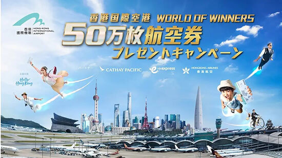 香港国際空港は、香港への航空券を計50万枚プレゼントする「香港国際空港 World of Winners 50万枚航空券プレゼントキャンペーン」を6月26日12時に開始する(航空券の諸税と燃油サーチャージは別途必要)。日本では、3万8000枚の香港への航空券が抽選で当たる。