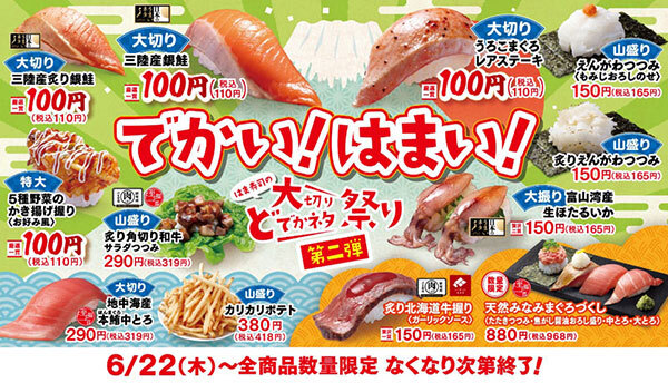 はま寿司は、「はま寿司の大切りどでかネタ祭り」第2弾として新たに4品を6月22日から販売する。