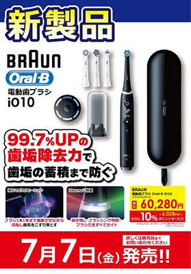 ビックカメラグループは7月7日に、ブラウンの電動はブラス「オーラルB iO10」の販売を、ビックカメラグループの健康家電取り扱い店舗にて開始した。現時点ではリアル店舗限定で、価格は6万280円。