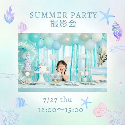 初日の7月27日は、めちゃくちゃかわいいパーティーセッティングの空間で撮影を行う「SUMMER PARTY撮影会」を実施する。カメラマンの木村理恵氏、安藤由佳氏が撮影を担当し、それぞれ6カットずつ納品する。SNS掲載が可能であれば、カット数を少し増やす。小さい子ども向けの椅子を用意しているが、一人で座れない赤ちゃんは親子ショットのみの撮影となる。7月28日は、「こどもとかめら」の今井しのぶ氏による「ライティングレッスン」を行う。ゴドックスを使った多灯ライティング、レフ、ソフトボックスアンブレラなどのアクセサリーの使い方までマスターできるように指導する。1人ずつライティングが組めるように少人数で開催する。
