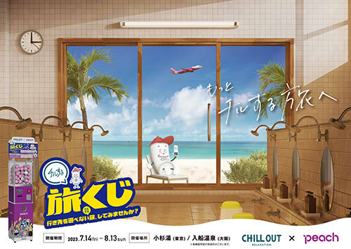 CHILL OUT(チルアウト)は、低運賃で気軽な空の旅を届ける「Peach(ピーチ)」との初コラボレーション企画「チルする旅くじ」を発売する。