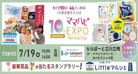 ルバートは7月19日(本日)、1日限定親子ひろば「ママハピEXPO」を、ららぽーと立川立飛で開催する。