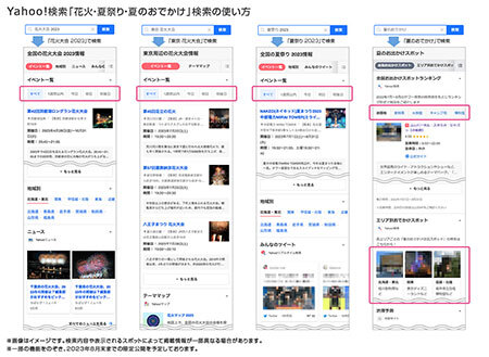 また、Yahoo!検索では夏祭りに関する情報の掲載も開始。加えて、夏のおでかけに関する情報を分かりやすく掲載している。さらに、「エリア別おでかけスポット」で、北海道・東北、関東、信越・北陸、東海、近畿、中国・四国、九州・沖縄と7エリア別のスポットランキングが確認できる。