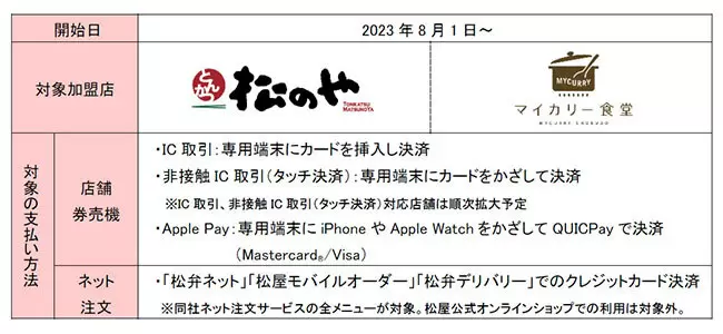 あわせて、松屋フーズによるネット注文サービス「松弁ネット」「松屋モバイルオーダー」「松弁デリバリー」では、最大5.5%の優遇をすでに対象である「松屋」に加えて、他のブランド店での各ネット注文サービス対象メニュー(商品)にも拡大する。