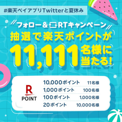 楽天ペイメントは、キャッシュレス決済サービス「楽天ペイ」において抽選で1万1111人に最大1万ポイントがその場で当たるキャンペーンを実施している。