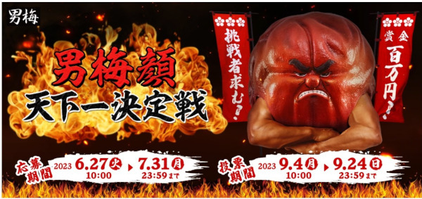 ノーベル製菓は、凝縮した濃厚な梅干しの味わいが楽しめる「男梅」シリーズの象徴である「男梅蔵」の顔にちなんだキャンペーン「男梅顔天下一決定戦」の投票を9月4日に開始した。投票期間は9月24日まで。