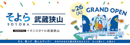 イオンリテールは9月26日に、埼玉県狭山市の国道16号線沿いに都市型ショッピングセンター(SC)「そよら武蔵狭山」をオープンする。小商圏の新フォーマット「そよら」として関東エリアでは「そよら湘南茅ヶ崎」に続く2店舗目、埼玉県内では初出店となり、2025年春には同市入曽地区にも「そよら」が開業予定となっている。