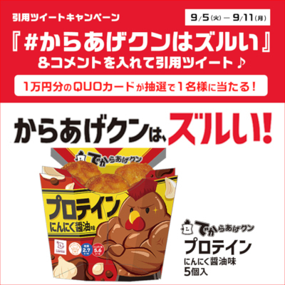 なお、発売に伴ってローソンではキャンペーンを実施。X(旧Twitter)の公式アカウント「@akiko_lawson」をフォローし、「#からあげクンはズルい」とコメントを付けて引用ツイートすると、1万円分のQUOカードが抽選で当たる。期間は9月11日まで。