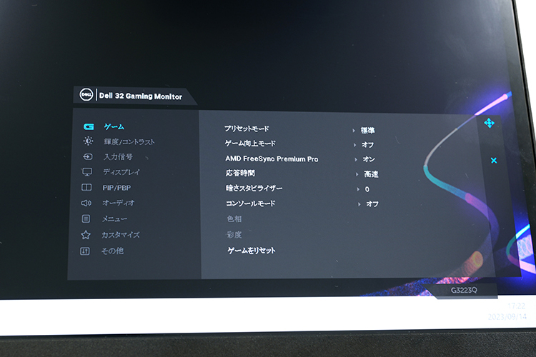 実際に、G3223QにPS5を接続して体験。PS5は、現時点のコンソールゲームとして最高レベルの4K画質に対応しており、G3223Qの性能をフルに生かすなら最適なゲーム機だ。G3223Qでは、専用コンソール モードを設定すると、4K信号やHDRテクノロジーに対応できる。
