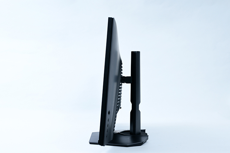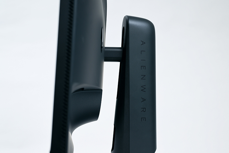 AW2524HFは使い勝手が良く、利便性が高いこともポイントだ。高さは約110mmで調節でき、左右の首振りや上下の角度、90°の回転で自由自在に調節できる。実際に調節してみたところ、高さや角度を調節する際の動きが非常に滑らかで、かなり細かく調節ができるため、理想のポジションを探しやすい。高さに関しては、画像で見にくいがメモリがついているため、同じ高さに戻しやすかった。目や肩に負担をかけないポジションは非常に重要なので、調節しやすいのは大きなメリットと感じた。