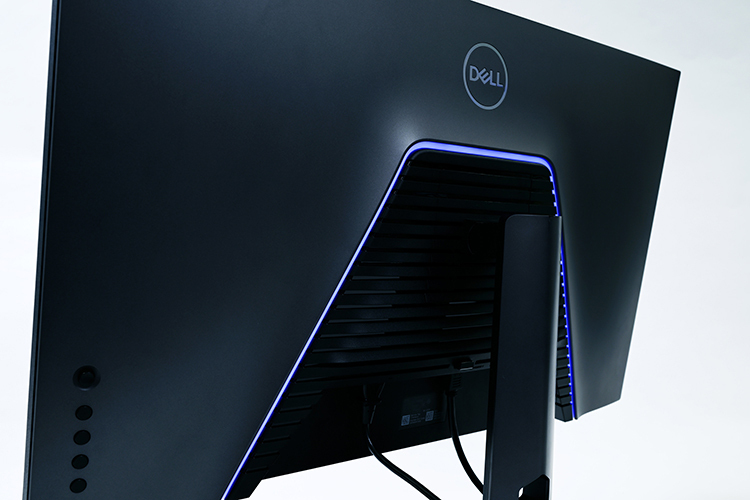 モニターのバックは、単色のライトに囲われた大きな通気口が特徴。グラフィックが多く使われるようなゲームを長時間プレイしても、熱を逃がしてモニターの温度調節ができる。実際に手を当てるとかなりの熱気が排出されており、確かにこれなら長時間ゲームで遊んでも安心だ。