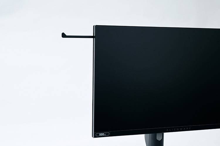 左上にはヘッドホンスタンドが内蔵されており、意外と置き場所に困るヘッドホンも手軽に収納できて便利。使わないときは中にしまえるため、邪魔になることもない。ちなみに、モニターの重さは約4.4kg。持ってみると意外に軽く、持ち運びにも不便はない。